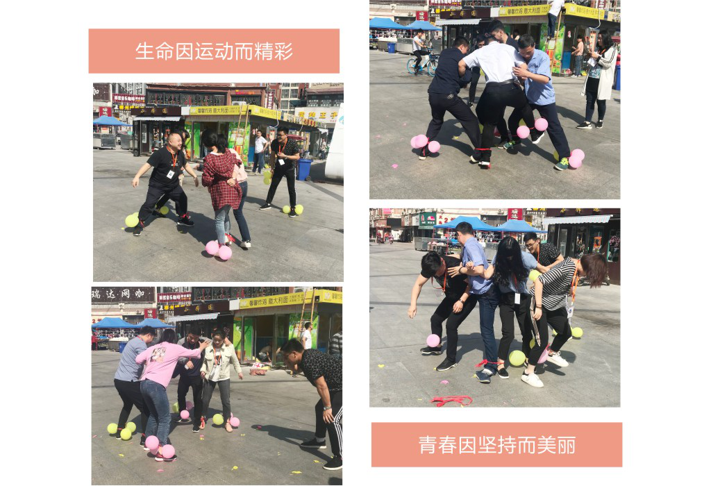 本次趣味運動會漯河新天地全員積極參與。運動會中共設置兩個比賽項目,團隊綁腿跑及雙人踩氣球,兩個項目既鍛煉了大家的動腦能力與協作能力,又提高了大家在工作中團結合作的精神。