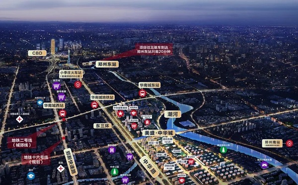一條東三環(huán),迭新城芯史。東三環(huán)自北向南依次串聯(lián)起北龍湖、CBD、高鐵站、濱河國(guó)際新城等高端住區(qū)。美盛·中華城屹立于東三環(huán)城央正脈之上,鄭州融港、融鄭的三區(qū)交匯核芯,享四縱三橫雙地鐵(2號(hào)線、16號(hào)線(規(guī)劃中))、高鐵、輕軌等多維便捷交通,進(jìn)退之間,預(yù)見(jiàn)城市發(fā)展航向。